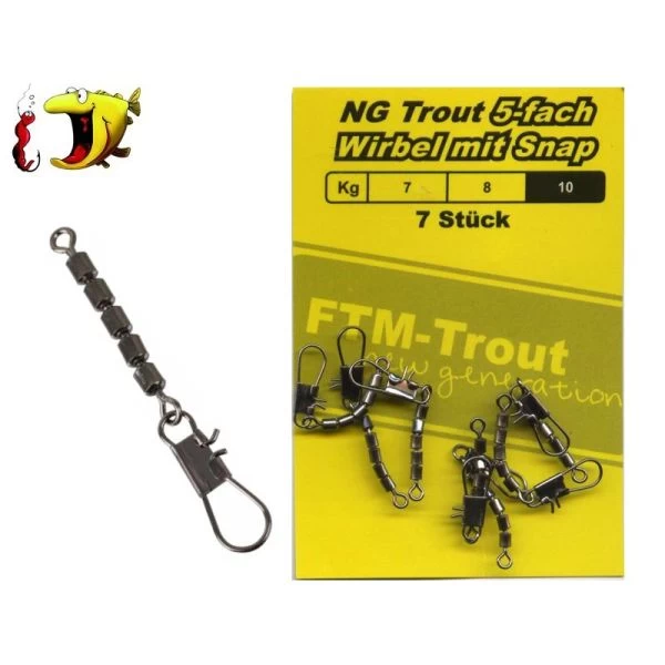 FTM NG 5-jointed svirvel m/hægte – Denne svirvel model benyttes bl.a. i forbindelse med bombarda fiskeri på kysten samt i P&T søen. Svirvel i super kvalitet!