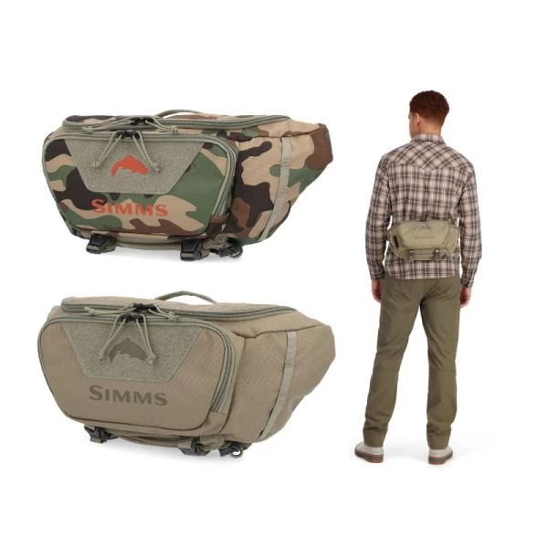 Denne bæltetaske fra Simms er designet med funktionalitet og pris for øje. Tasken er godt indrettet, så man kan have alt det nødvendige udstyr til en smut tur til åen eller søen. Du kan have en grejæske, ekstra forfang, værktøj og andet nødvendigt i tasken, og lige ved hånden, når du skal bruge det. Tasken er produceret i en 100% genbrugt 600D nylon, som er utroligt slidstærk med en vandafvisende imprægnering. Tasken har fint ruminddeling, og en mindre lomme på fronten. Flere steder på tasken er der mulighed for montering af værktøj. Tasken sidder komfortabelt på lænden, og giver en god støtte.