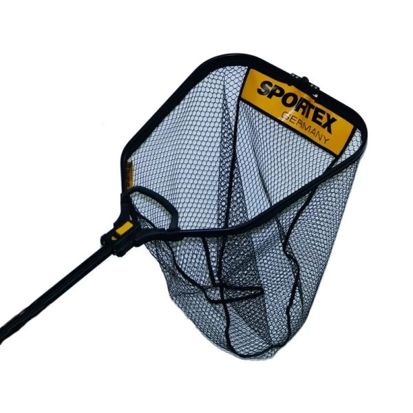 Sportex Predator fangstnet. Gedigent fangstnet, der er dedikeret til de HELT store fisk. Og endelig er der én der har tænkt over design og funktion, og ladet det hånd i hånd. Nettet er selvfølgelig gummi, så du passer på fisken, og undgår det evindelige problem med kroge i netposen. Netrammen er forsynet med et specielt løftegreb, så du lettere får din fangst i land, og det uden at beskadige hverken skaft, net eller fisk! Netrammen kan foldes sammen på midten, og skaftet skydes ind. Så under transport fylder nettet minimalt! Nettet har et gummihåndtag, der sikrer dig et godt og solidt greb, selv med våde eller kolde fingre.