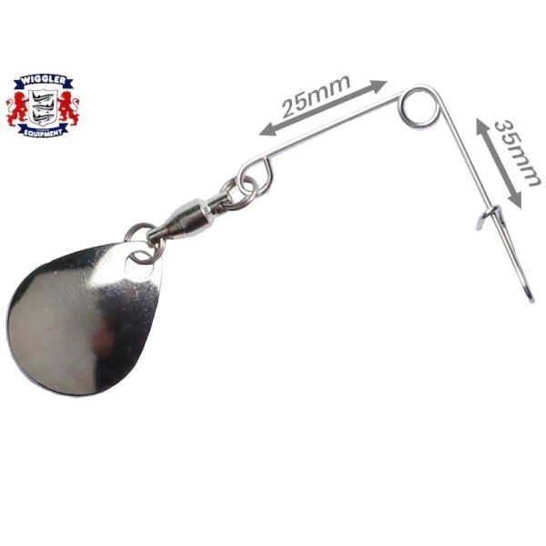 Wiggler Jig Spinner – benyttes bl.a. ved jig fiskeri. Skab mere liv med denne jig spinner! Prøv også at benytte Jig Spinneren som en “pilot agn” til din wobler eller dit blink