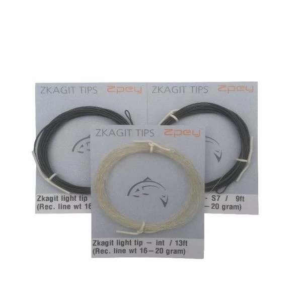 Zpey Zkagit Light Tips kommer i 2 modeller, Single Hand og Double Hand. Der er mange synkehastigheder lige fra Intermediate til Sink7. Dette giver mulighed for at fiske effektivt i alle situationer. Kommer du til en å/elv som er helt tom for vand, eller til en norsk elv der er gået over sine brinker, så har du våbnet til at komme ned til fiskene!